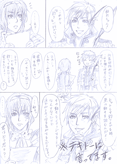 対極的な性格の二人がどう話を展開していくか考える時、とても楽しかったです!…というか、ダルフィムが強引に話を進めてますね…;モーリスさん、釣り情報なんて収集しなくても大丈夫ですので…!