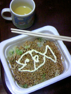 普段は食堂で食べるんだけど、インスタントの焼きそばがあったから食べたんだ。